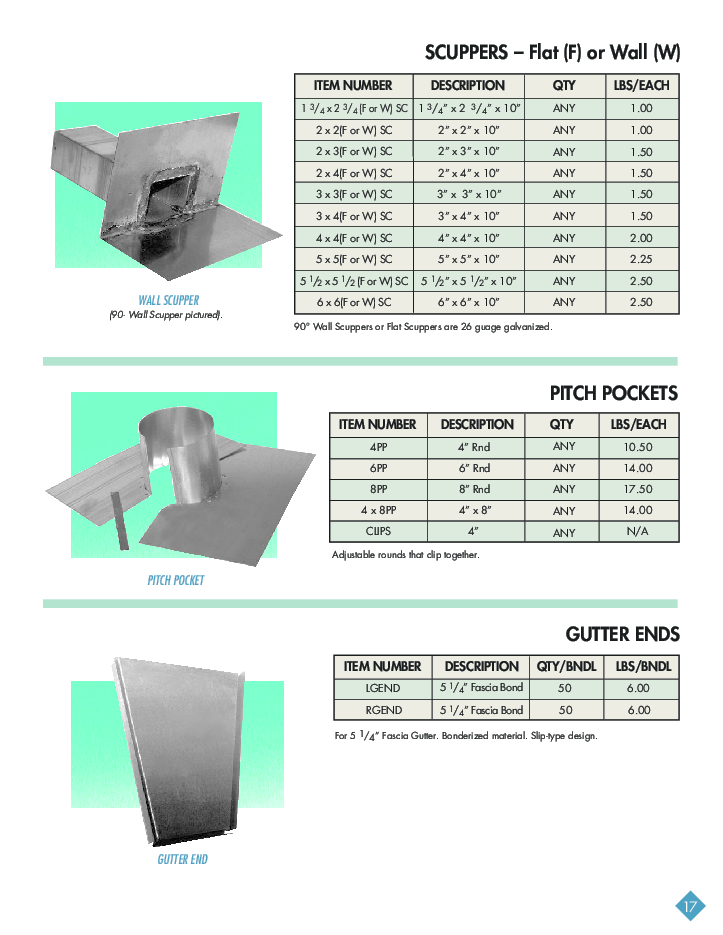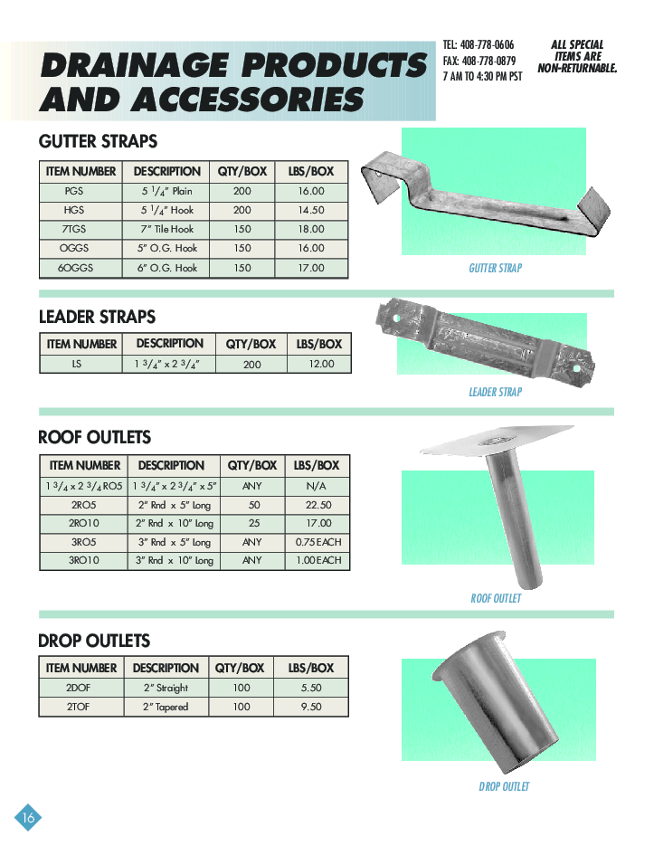 DRAINAGE PRODUCTS & ACCESSORIES Gutter Straps Leader Straps Roof Outlets Drop Outlets Scuppers Pitch Pockets Gutter Ends |