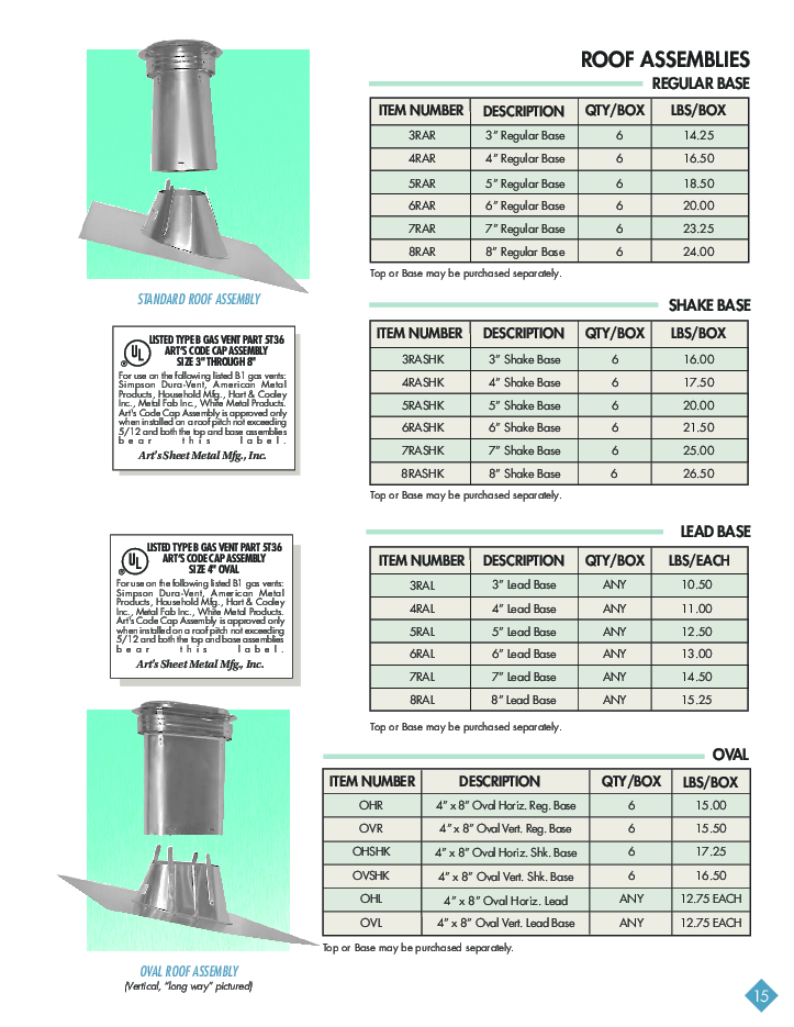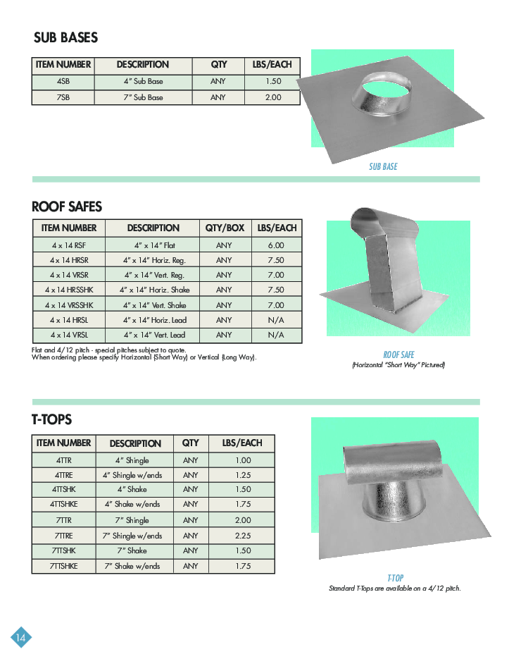 ROOF TOP FLASHINGS Plumber's Flashings Fan Jacks Pre-Jacks Sub Bases Roof Safes T-Tops Roof Assembly Roof Assembly (oval) |