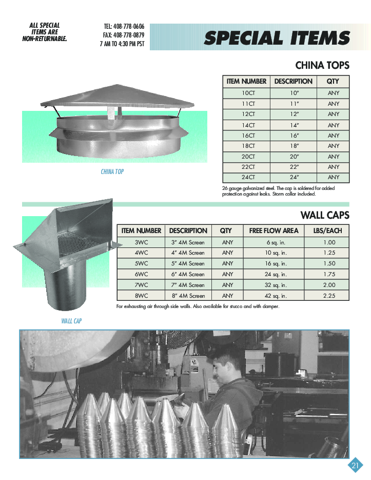 SPECIAL ITEMS China Tops Wall Caps |
